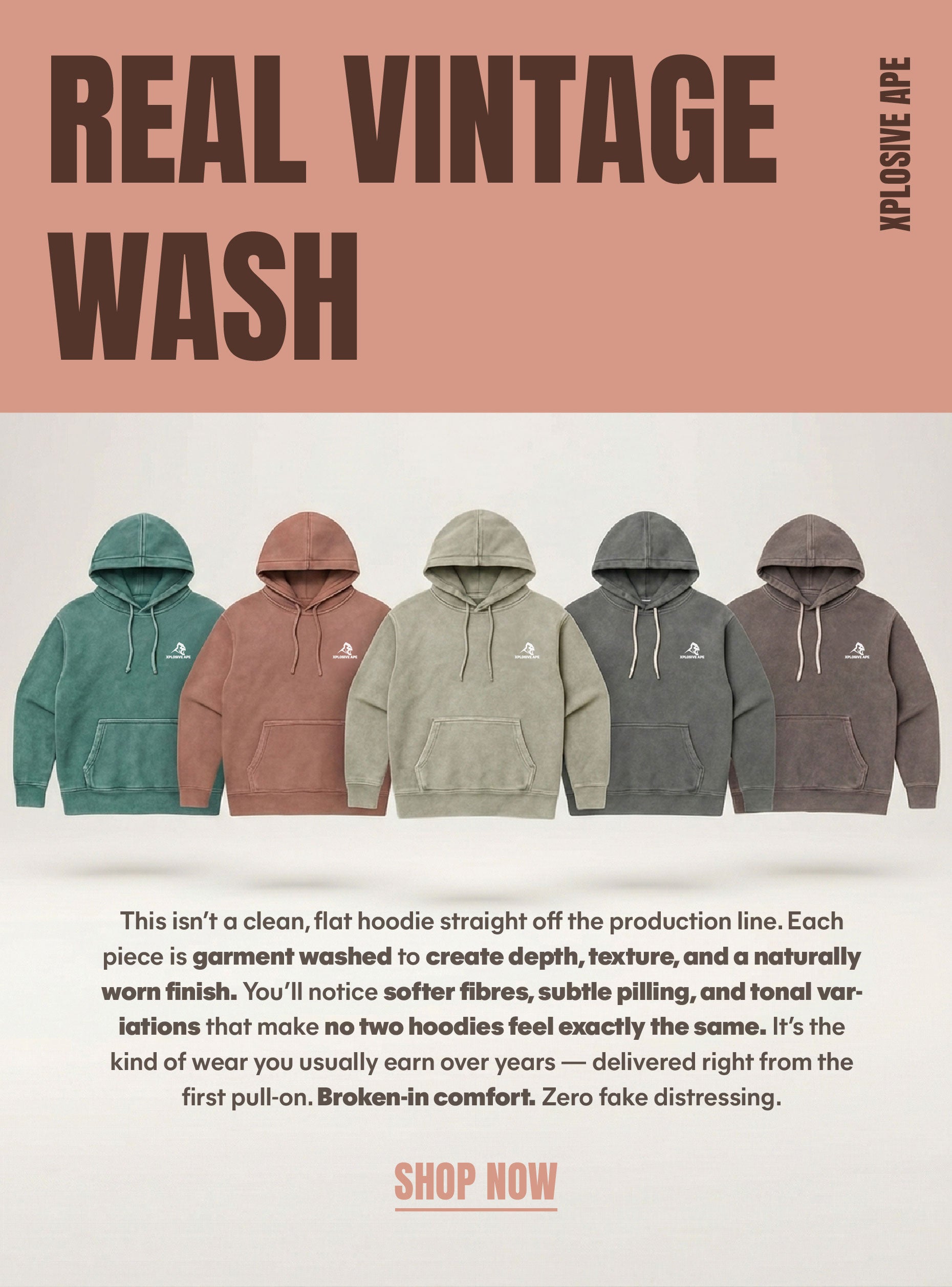 XAPE Essential Vintage Wash Hoodie - Stone